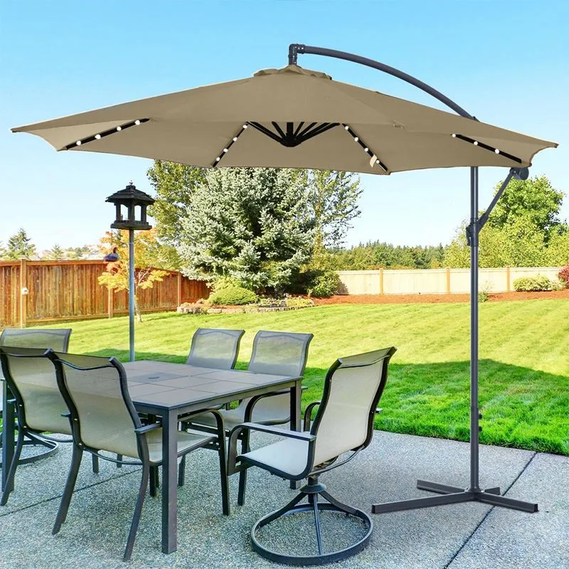 Payung julur pelindung UV sering digunakan di kawasan luar yang cerah, seperti dataran, taman atau kolam renang luaran. Reka bentuk julur bukan sahaja meningkatkan estetika tetapi juga meningkatkan ruang penggunaan. Kali ini, fungsi telah dinaik taraf. Ia bukan sahaja boleh melindungi daripada matahari, tetapi juga mempunyai manik lampu boleh dicas semula untuk digunakan pada waktu petang. Ia berkuasa solar dan merupakan reka bentuk mesra alam yang tidak menggunakan tenaga elektrik. Ia amat sesuai digunakan di restoran luar, di mana anda masih boleh menikmati pemandangan malam dan makanan walaupun pada waktu malam. Payung diperbuat daripada fabrik poliester berkualiti tinggi, yang bukan sahaja kalis air tetapi juga mudah dibersihkan, jadi ia boleh digunakan seperti biasa pada hari hujan.