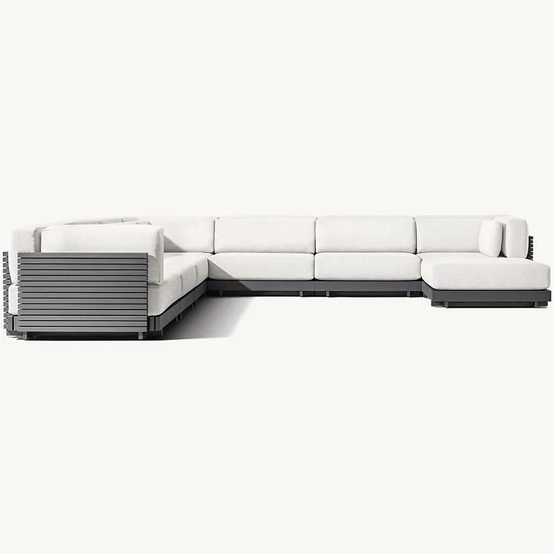Sofa luar kami L dibina untuk bertahan, menampilkan bingkai aluminium teguh yang menawarkan kekuatan dan keanggunan. Aluminium, yang terkenal dengan sifat tahan karatnya, memastikan perabot luaran anda tahan unsur-unsur tanpa rosak. Bahan ini bukan sahaja tahan lama tetapi juga ringan, menjadikannya mudah untuk bergerak dan menyusun semula persediaan anda mengikut keperluan. Kemasan anggun bingkai aluminium menambah sentuhan kontemporari, meningkatkan daya tarikan estetik ruang luar anda.