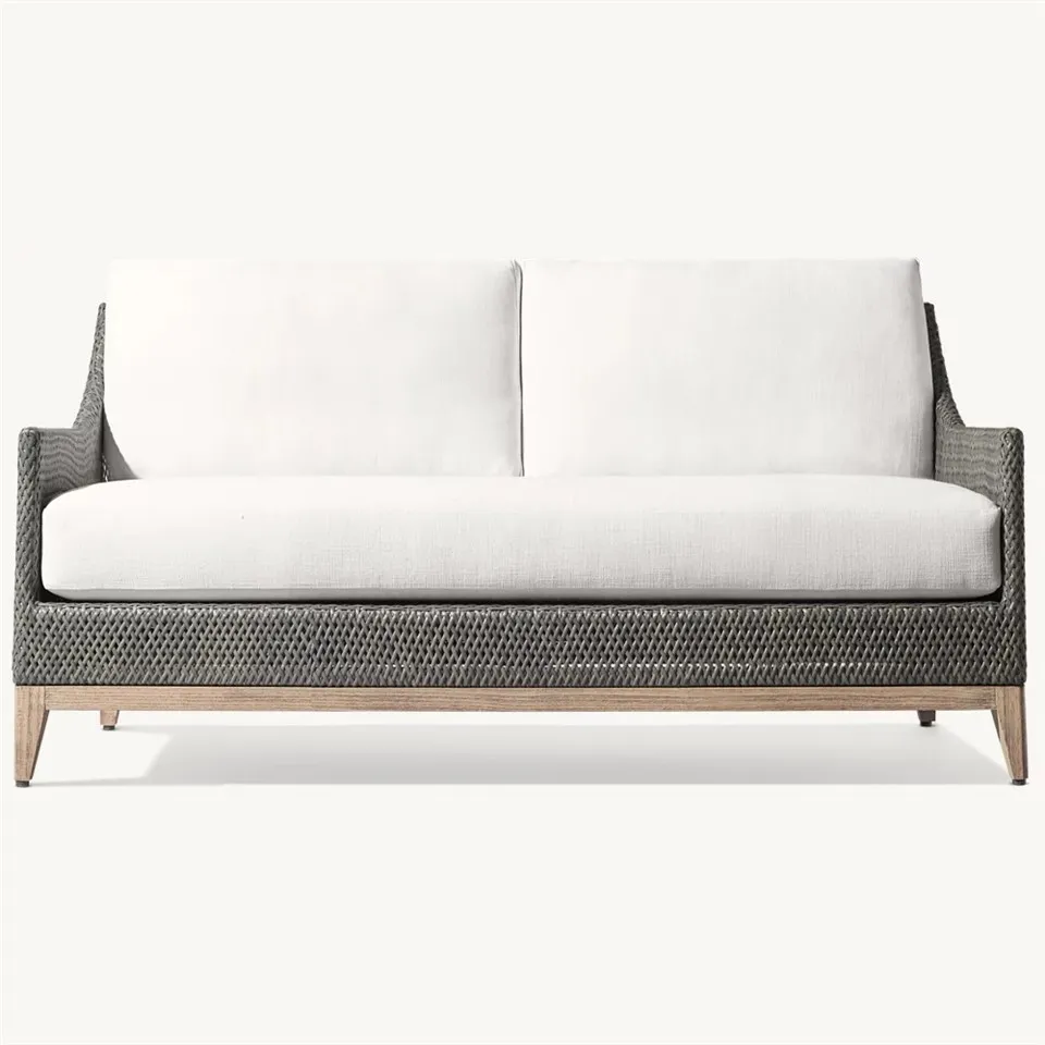 Bahagian rotan diperbuat daripada bahan tahan cuaca, yang boleh menyesuaikan diri dengan pelbagai iklim luar yang keras dan memastikan hayat perkhidmatan jangka panjang. Reka bentuk struktur sofa juga sangat canggih, dengan struktur berbentuk X di bahagian bawah, yang meningkatkan kestabilan dan ketahanan keseluruhan. Pelapik kaki diperbuat daripada kayu jati berkualiti tinggi, yang mempunyai ketahanan dan ketahanan yang sangat baik terhadap pecah, memberikan sokongan padu untuk keseluruhan sofa.